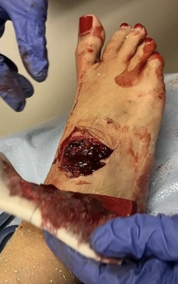 Meanwhile, those who came to her aid asked her if she had seen her foot and the injury she sustained.