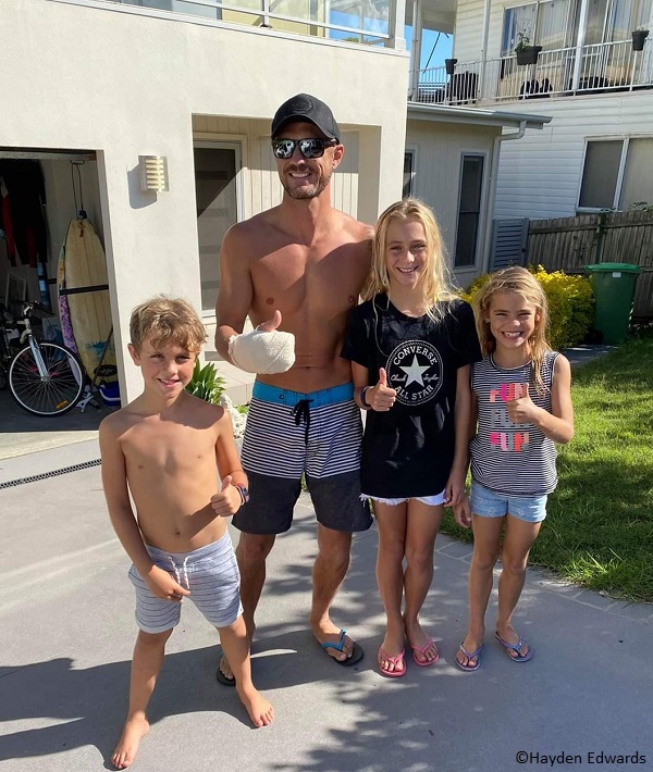 Hayden Edwards, 38, made his first paddle past the breakers at Wamberal Beach around 10 a.m. While he was admiring the sun glittering off the blue water, a 6-foot (1.8 m) shark grabbed his right hand.